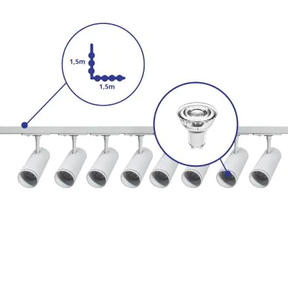 | Manufacturer Name | Complete L shaped 1-Phase Track Set White incl. 8x Spot fixture + GU10 2700K 3W Dim – 1.5 x 1.5 mete | |