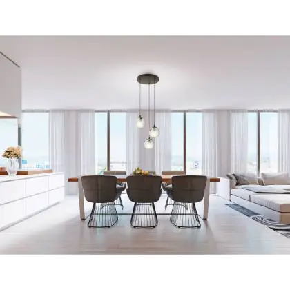 The colour of the fixture can play a major role in the interior design of a room. You can opt for a neutral white design or a darker colour, such as black or silver, to make the light source stand out or even turn it into a decorative feature on its own.