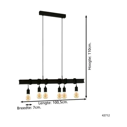 Eglo Pendant Townshend 6 Steel Black | IP20 - Suitable for 6x E27