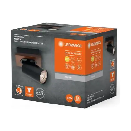 Ledvance LED Decor Spot Mercury Steel Black 3.4W 230lm - 927 Extra Warm White | Dimmable - Best Colour Rendering