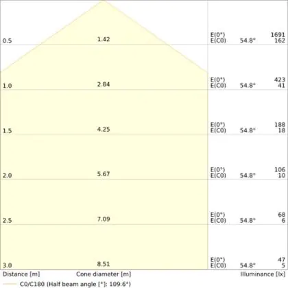 ![]() The colour code is a combination of colour rendering (CRI) and light colour (Kelvin). The first number indicates the colour rendering (1 = very poor colour rendering, 9 = maximum colour fastness). The second and third number contains the light colour. Example: the colour code 830 consists of good colour rendering (8) and warm white light (3000K). |