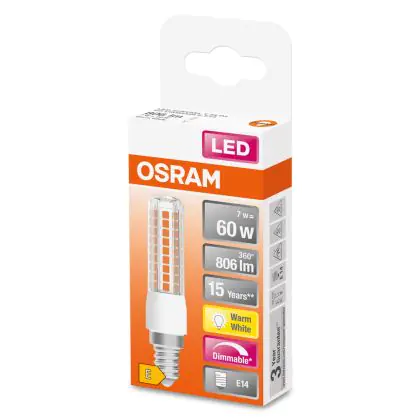 Osram Special T Slim LED E14 Clear 6.5W 806lm - 827 Extra Warm White | Dimmable - Replaces 60W